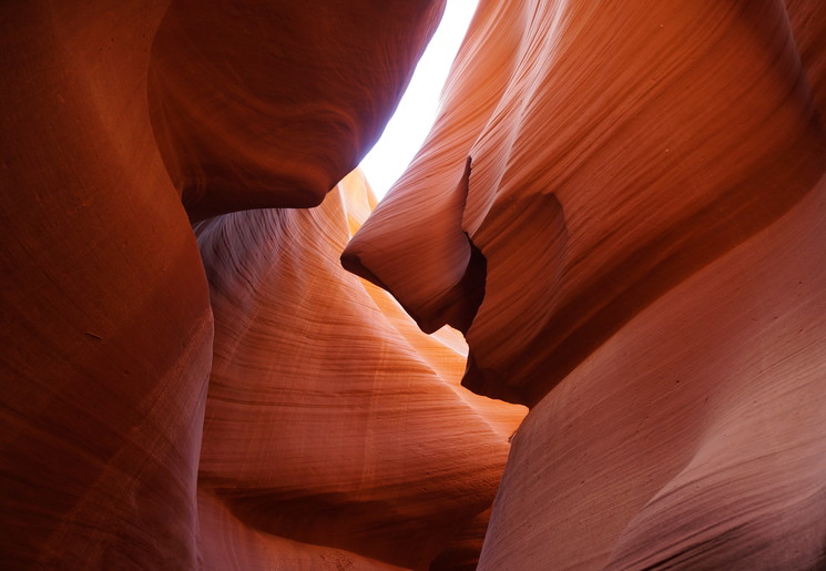 Vanuit Page bezochten wij de Lower Antelope Canyon (er is ook een Upper variant), een 400 meter lange smalle kloof met hoge wanden. Het bijzondere van deze kloof zijn de verschillende rotsstructuren in vele tinten rood/oranje die steeds veranderen bij verschillende lichtinvallen. Je waant je echt in een andere wereld en we hebben er eindeloos prachtige foto’s gemaakt. Je kunt er alleen met een gids in, en omdat het zo populair is, moet je zeker van tevoren reserveren.