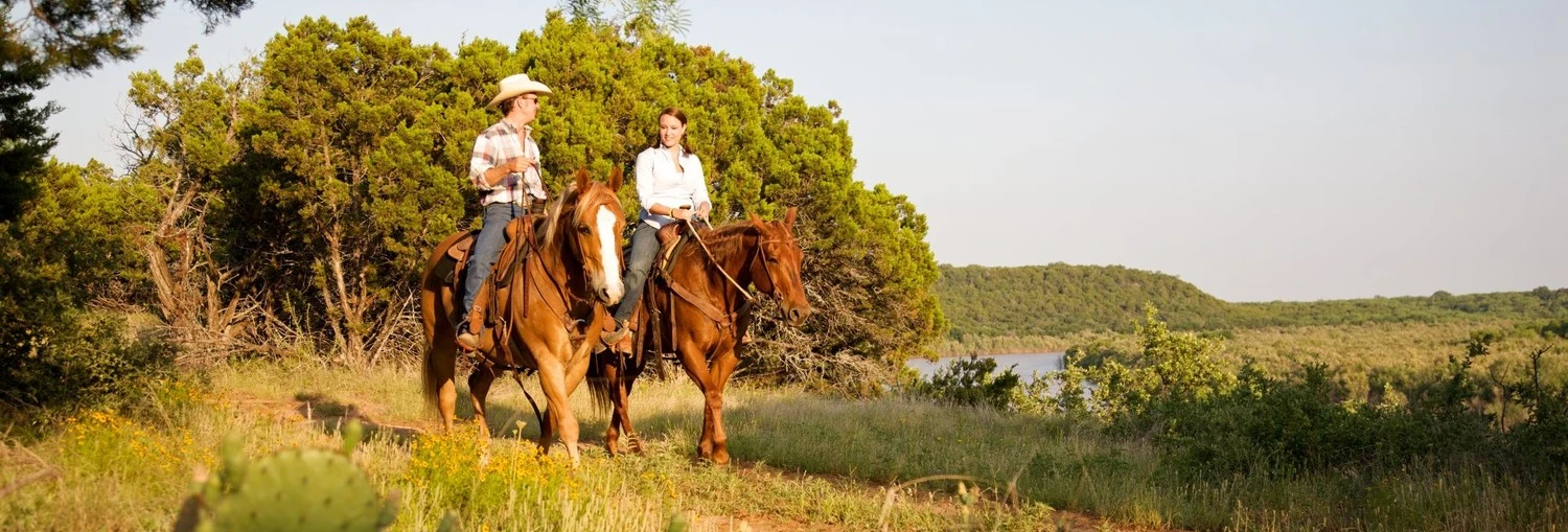 Een echte Texaanse ranch! Zelfs de paarden ontbreken niet en ook longhorns kom je hier tegen. De hoorns van deze runderen zijn enorm. De zonsondergang kun je tijdens een paardrijrit bekijken, maar ook vanaf het zwembad is deze prachtig. Een heus steakhouse ontbreekt niet op dit landgoed.