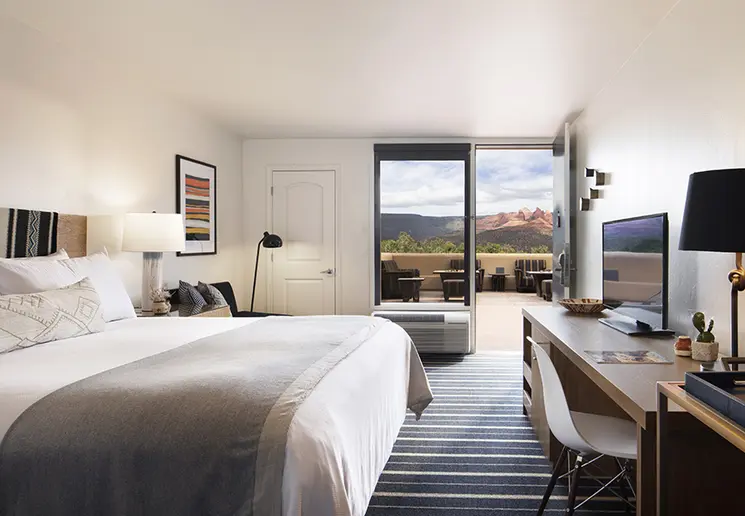 Verscholen tussen hoge, rode rotsformaties vind je het sfeervolle plaatsje Sedona. De omliggende vallei, waar menig westernfilm is opgenomen, dient als prachtig decor vanuit de stad.