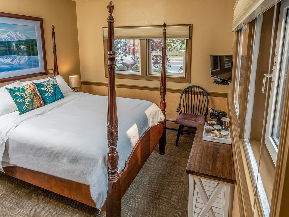 Overnacht in een charmant B&B in het centrum van Anchorage. Bijzonder is dat het stijlvolle en historische hoofdgebouw een van de weinige gebouwen is die de grote aardbeving van 1964 in Anchorage heeft overleefd. De woonkamer is een warme ontmoetingsplaats, waar elke dag een continentaal ontbijt wordt geserveerd. De omliggende tuinen sieren het terrein en tijdens het zomerseizoen is er ook fi...