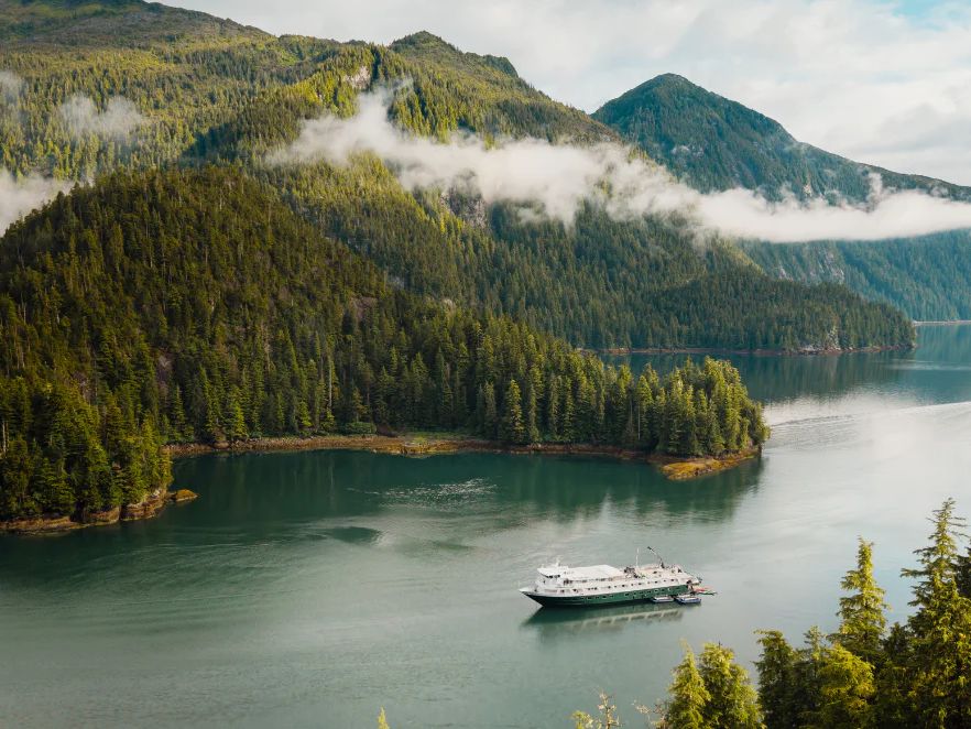 Stap aan boord van de Wilderness Discoverer, een expeditieschip met plek voor slechts 76 gasten. Het schip heeft een typisch Alaskaanse uitstraling met hout; ergens doet het denken aan een lodge. Het schip heeft een geringe diepgang, waardoor het in baaien en fjorden met ondieper water kan varen.