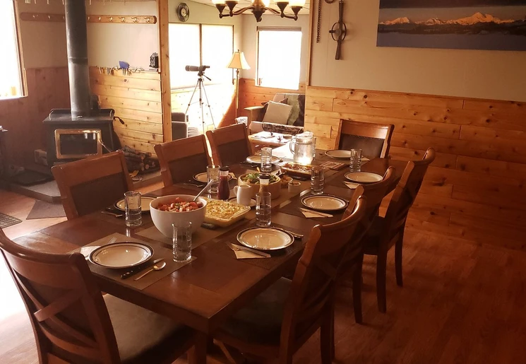 In Talkeetna stap je in een watervliegtuigje voor een korte, maar spectaculaire vlucht over bossen, rivieren en bergen. Nog geen 20 minuten later land je op een stil meer midden in de wildernis, aan de rand van Denali National Park. Hier zijn een lodge en enkele houten cabins gebouwd, waar twee gezinnen wonen. Hun kinderen vinden het extra leuk als er gezinnen met kinderen komen slapen. Er is geen wifi, maar er is genoeg te doen. De familie leid je rond en dan is het al tijd om te lunchen. Met een goed gevulde maag heb je genoeg energie voor een wandeling over de toendra. De lodge heeft laarzen in alle maten klaar staan ,om goed over de zompige grond te kunnen lopen. Tijdens de hike spot je zomaar een eland of zelfs een beer. Na het eten wordt de open haard aangestoken.