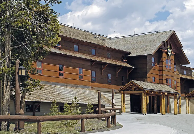 Ga lunchen in het historische Old Faithful Inn hotel.