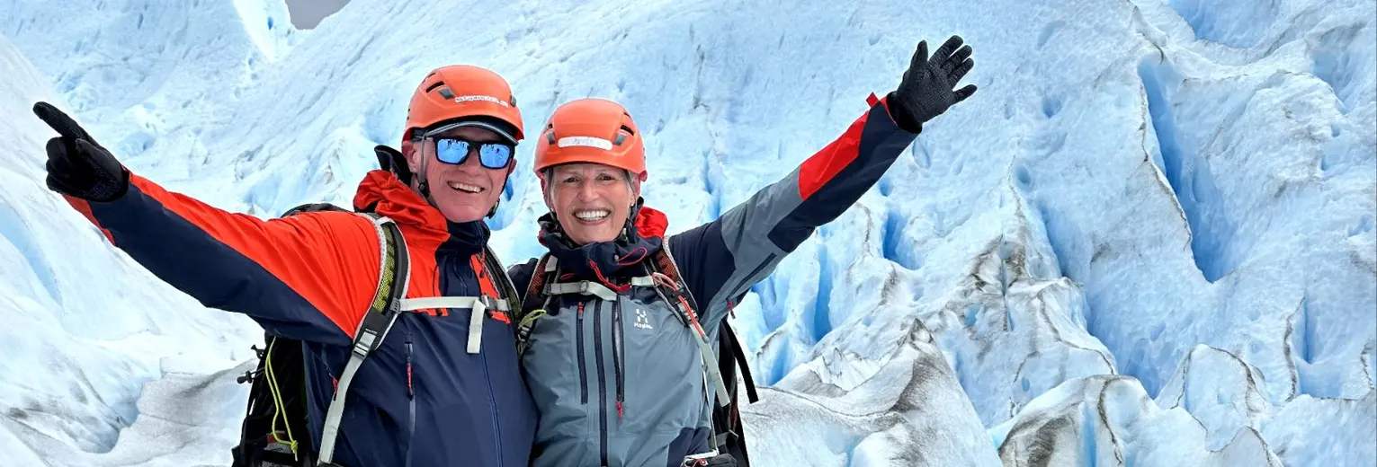 Spannend: een ijswandeling over de Perito Moreno gletsjer. Een catamaran brengt je naar het startpunt. Je trekt je sneeuwschoenen met ijzers eronder aan en staat op de gletsjer. Langzaam, onder begeleiding van een gids loop je een stuk de morene op. Je ziet diepe scheuren in het ijs. De eerste keer dat je een blok ijs hoort afbreken, denk je waarschijnlijk dat de grond onder je voeten vandaan slaat, maar het is een eind weg. Je ziet ijsgrotten. Na dit avontuur ga je naar een herberg waar je op eigen kosten kunt lunchen en naar de houten vlonders waar je wandelt naar diverse uitkijkpunten over El Perito Moreno. Er zijn 4 wandelroutes uitgezet. Deze excursie kunnen we boeken voor reizigers van 18 tot 65 jaar.