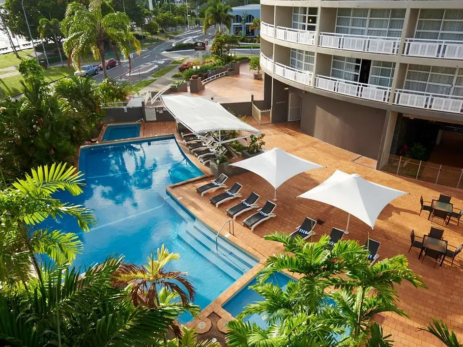 Het hotel ligt aan de Esplanade, de lange boulevard die grenst aan de zee bij Cairns. De entree tot het hotel ligt aan het achterliggende Abbott Street. Het is 500 meter lopen naar het centrale Cairns Lagoon zwembad en u bent één straat verwijderd van het gezellige centrum van Cairns. De Reef Fleet Terminal waar vandaan de boten vertrekken ligt op 1 kilometer lopen.