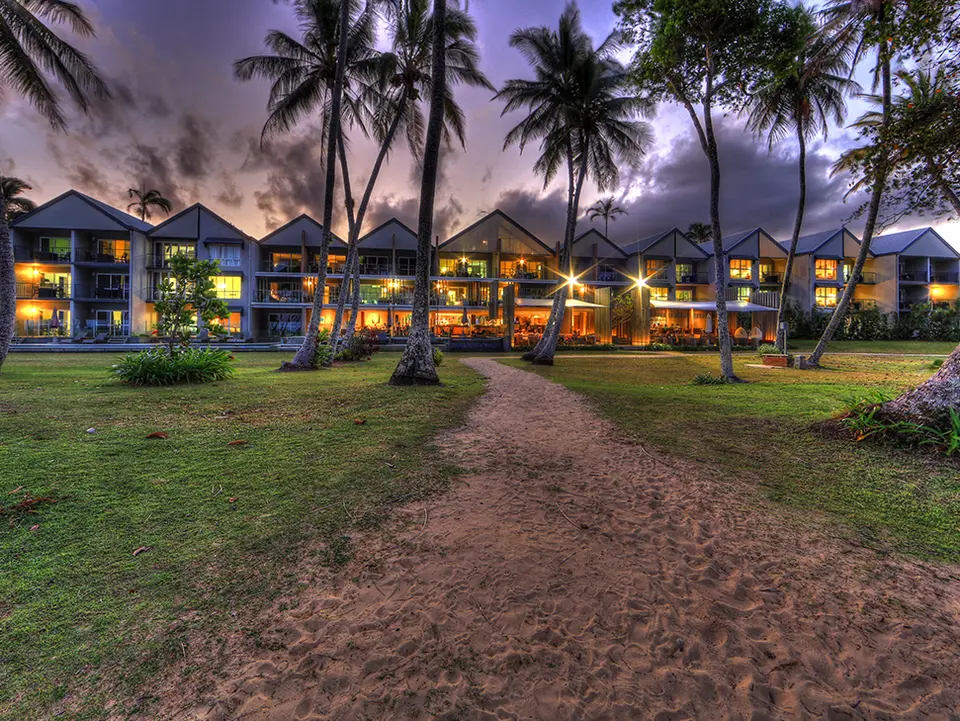 Het resort ligt tussen de palmbomen verscholen met directe toegang tot het lange zandstrand van Mission Beach. Mission Beach is een klein en rustig kustplaatsje met één lange hoofdstraat. Vanaf Mission Beach kunnen er tours worden geboekt naar het Great Barrier Reef.