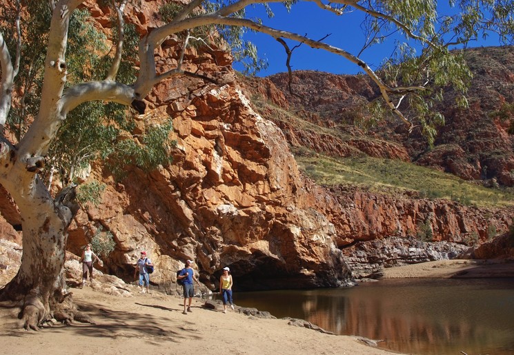 Tjoritja West MacDonnell National Park strekt zich uit over 161 kilometer ten westen van Alice Springs. Verken en waardeer de landschappelijke schoonheid en geschiedenis van het gebied te voet. Vergeet je zwemkleding niet, want in het park zijn diverse permanente watergaten te vinden. Neem een duik in het koude water om even af te koelen en daarna weer meer van het park te ontdekken. De grotere watergaten zijn Ellery Creek Big Hole, Ormiston Gorge, Redbank Gorge en Glen Helen Gorge.