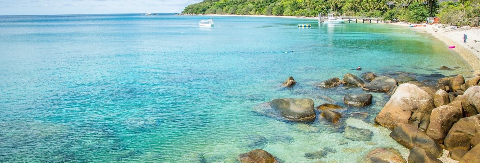 Op 45 minuten varen vanaf de haven van Cairns ligt Fitzroy Island. Dit ongerepte eiland gelegen in de Great Barrier Reef is omringd door koraalriffen, die te bereiken zijn vanaf beschutte stranden met kalme wateren. Het eiland bestaat voor 97% uit nationaal park, met een ongerept regenwoud waar goede wandelroutes doorheen lopen. Fitzroy Island barst van de fotogenieke plekjes. Er is slechts één resort aanwezig, twee restaurants en er zijn tal van activiteiten. Extra bijzonder op het eiland is de Cairns Turtle Rehabilitation, waar zieke en gewonde schildpadden worden opgevangen en verzorgd, voordat ze weer worden vrijgelaten in de oceaan. Je kunt het eiland bezoeken als een dagtocht of met overnachting in het resort.