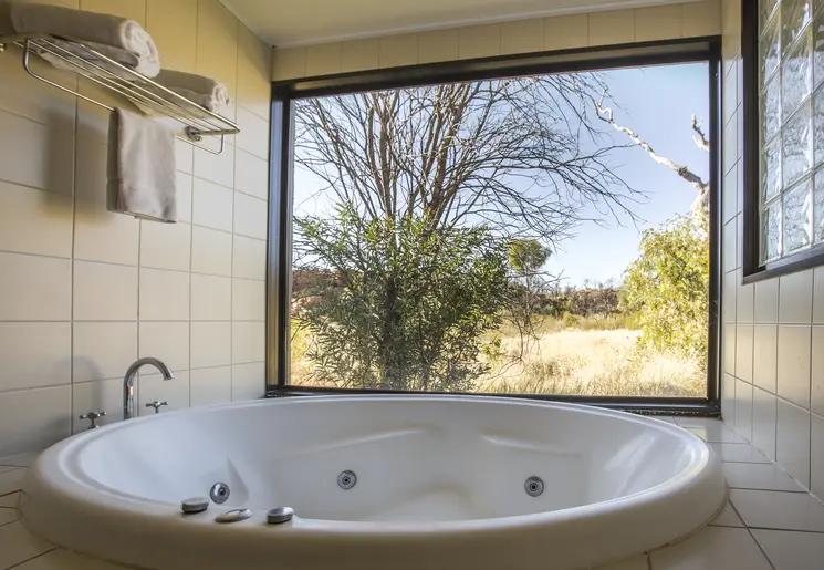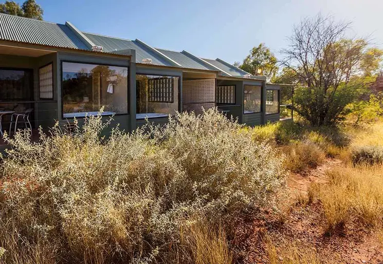 Het is een korte rit van de luchthaven naar je hotel in Yulara.