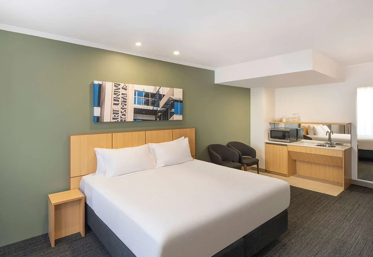 Ideale locatie om Melbourne te verkennen te midden van restaurants en bezienswaardigheden. Groot, prima hotel met nette kamers.