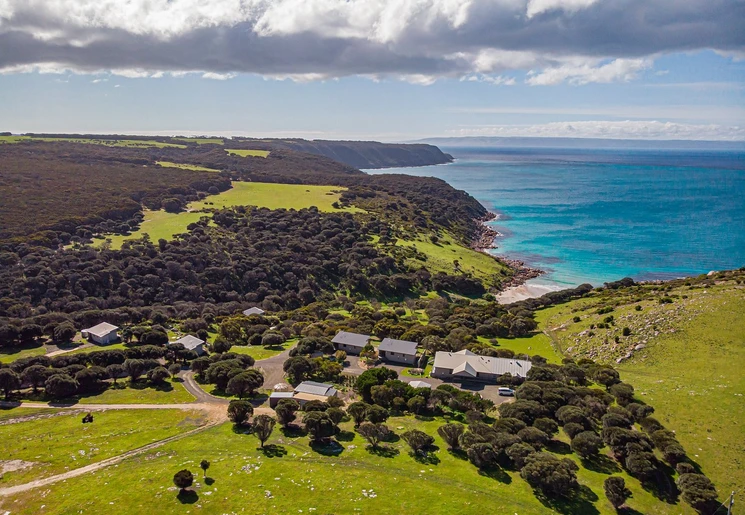Je rijdt vanaf de terminal naar je hotel op Kangaroo Island.