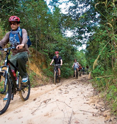 Onderweg passeer je een overhangende rots met 500 jaar oude begrafenispotten, een tastbare herinnering aan een mysterieuze cultuur. De tocht eindigt bij de Betel Nut-waterval, waar je kunt uitrusten en pootjebaden in het frisse water. Daarna fiets je via dezelfde route terug. Geen zin meer om te fietsen? Dan kun je tegen betaling achterop de motor terug.