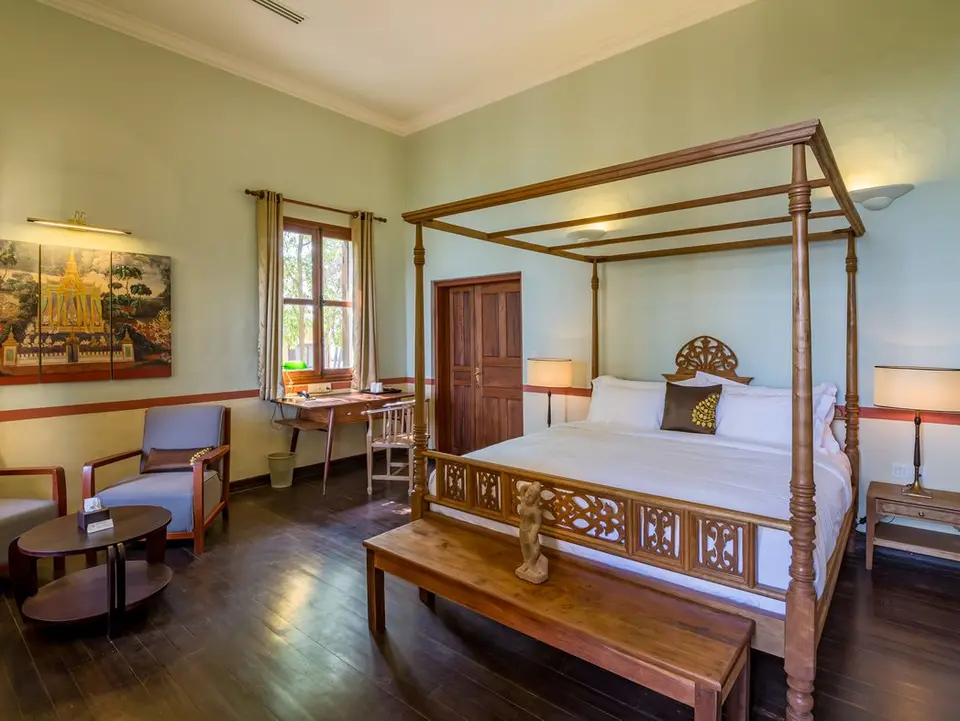Dit kleinschalige boutique hotel is gevestigd in een gerenoveerd koloniaal landhuis. In het restaurant met zicht over de Mekong proef je traditionele Khmer gerechten.