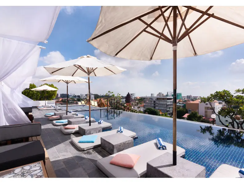 Patio Hotel & Urban Resort heeft 45 luxe kamers en moderne voorzieningen, een overloopzwembad, een bar en restaurant op het dak. Vanaf het rustige dakterras heb je een ongeëvenaard uitzicht op Phnom Penh. Stap je de deur uit, dan sta je midden in het centrum, in een populaire straat met winkels, bars en restaurants, en must-see” bezienswaardigheden.
