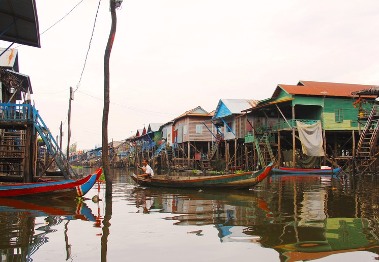 Centraal in Cambodja, en niet ver van Siem Reap, ligt het Tonlé-Sap meer. Hier wonen de mensen in huizen die drijven op het water. In de regentijd groeit het meer uit tot het grootste zoetwatermeer van Zuidoost-Azië. Siem Reap ligt dan zelfs heel dichtbij de oever van het meer. Met een tuktuk bent u er zo. In het droge seizoen is het meer ‘maar’ 2700 m2. In de moessonperiode wordt het meer zo’n 6 maal groter. De bewoners van de drijvende huizen, lichten hun anker en verhuizen mee met de oever van het meer. Het is heel bijzonder om te zien hoe het leven op, aan en vanaf het water eraan toegaat. Maak een tocht met een motorbootje of kajak over het meer naar één van de drijvende dorpen en peddel tussen de huisjes door.