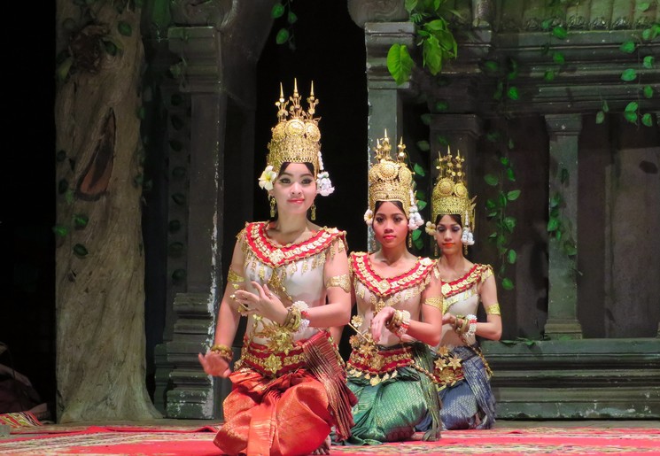 De Apsara’s zijn tempeldanseressen. Met ingewikkelde handbewegingen bidden ze tot de goden. De traditionele Apsara-dans stamt uit de 7de eeuw, uit het glorieuze Khmer-rijk. Op de muren van de tempels ziet u vele reliëfs van deze danseressen. Bij de tempels van Angkor kunt u op de foto met een real-life Apsara-danseres. Een wonderschone dame in een bijzonder gewaad en hoofdtooi. Tegen een kleine vergoeding natuurlijk, want ze staan daar nou eenmaal voor de toeristen. Wij vonden het echter veel leuker om een Apsara dansvoorstelling bij te houden. Dat kan op meerdere plaatsen, bijvoorbeeld in het Angkor Village Apsara Theatre. Woon hier een show met diner bij.