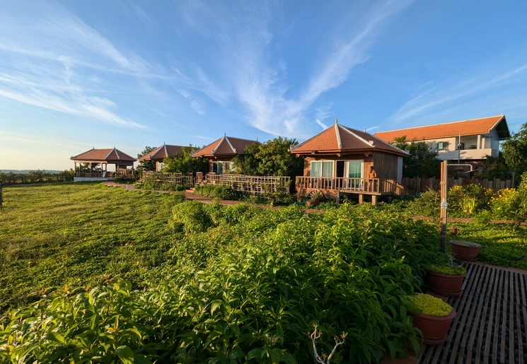 Wat stel je je voor bij een hotel in Azië? Een kleinschalig verblijf met kamers in vrijstaande huisjes tussen de rijstvelden? Met een weelderige tuin, een restaurant en een zwembad? Als dat op je wensenlijstje staat, zit je goed in het Battambang Resort.