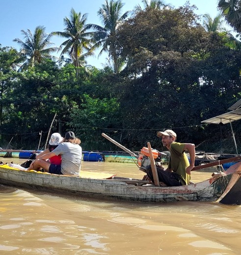 Je meldt je bij het ticketkantoor bij de pier in hartje Sihanoukville. Daar wissel je je voucher om voor een retourticket. De ferry doet meerdere baaien aan. In welke volgorde? Dat wordt op het moment zelf besloten. De duur van de overtocht is daardoor vooraf niet precies aan te geven. Het zal tussen een half uur en 1 uur zijn.
