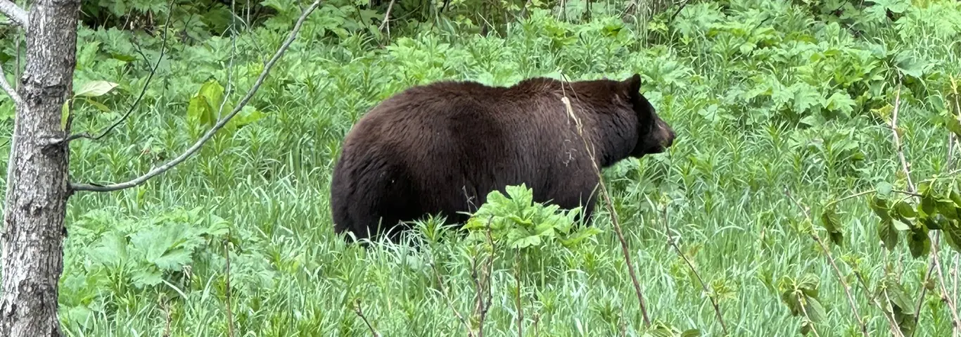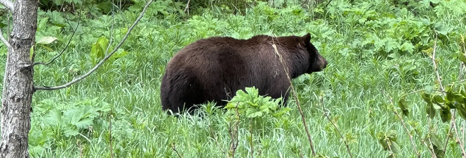 Terwijl we de volgende dag naar Well Grey National Park rijden, hebben we meer geluk. We spotten de eerste beren langs de snelweg! De eerste beer passeerden we helaas met 100km per uur, dat was balen… Maar gelukkig stond er een half uur later weer een beer aan de kant van de weg. We konden even stoppen om de beer te aanschouwen, zo gaaf!