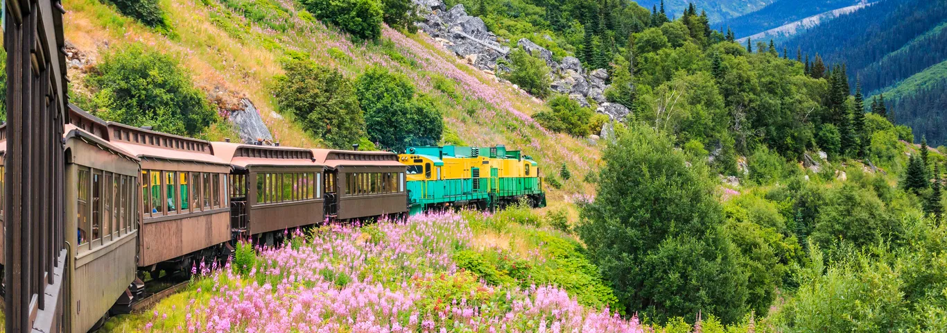 Eén van de allermooiste treintrajecten ter wereld wordt afgelegd door de White Pass & Yukon Trail. Het is een onvergetelijke rit door de wildernis van Canada. De rails werden tijdens de Klondike Goldrush aangelegd. Je komt langs (bevroren) meren, gletsjers, diepe canyons, watervallen, rijdt door pikdonkere tunnels en over houten spoorbruggen. Hoogtepunt is de 914 meter hoge White Pass die de trein overbrugt. Een paar tips: ga aan de linkerkant van de trein zitten voor het mooiste uitzicht. Maar blijf niet zitten, ga op het balkon staan. Met een touringcar word je van Fraser naar Whitehorse gebracht. Onderweg zie het adembenemende Emerald Lake en je stopt in het historische goudzoekersdorp Carcross.
