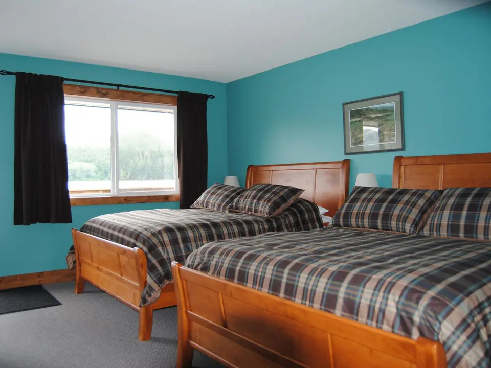 Alle kamers, 18 in totaal, zijn voorzien van comfortabele queensize bedden en een eigen badkamer met douche. Er zijn 4 kamers met 1 queensize bed en 2 eenpersoonsbedden, geschikt voor families van 4 personen. De kamers hebben allemaal uitzicht op Glendale Cove of de kustlijn voor de lodge waar vaak beren te zien zijn.