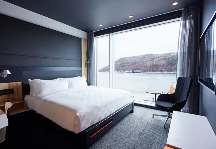 Gelegen op de heuvel, met uitzicht op de haven en de oceaan is dit hotel te vinden. Ideale plek na een overtocht met de veerboot, of voorafgaande aan de vroege overtocht. Ruime kamers, een pub/lounge en restaurant maken het verblijf helemaal af.