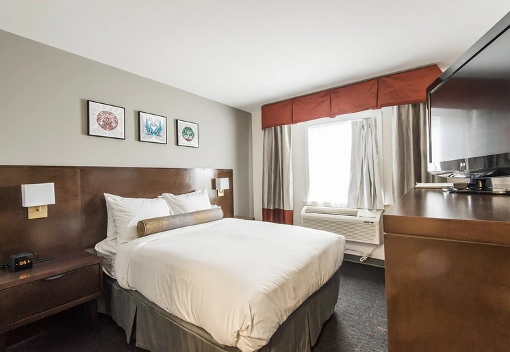 Het Edgewater Hotel past helemaal in de stijl van Yukon. Een historisch houten gebouw, waar je je meteen in de goudzoekerstijd waant. En de locatie kan niet beter! Je steekt de straat over en je staat op het wandelpad langs de Yukon-rivier. Het Edgewater ligt in het historische centrum van Whitehorse.