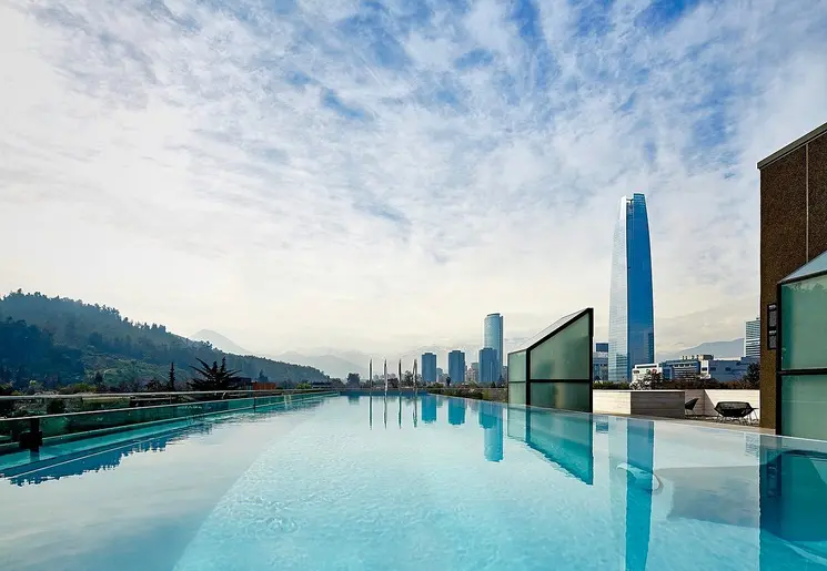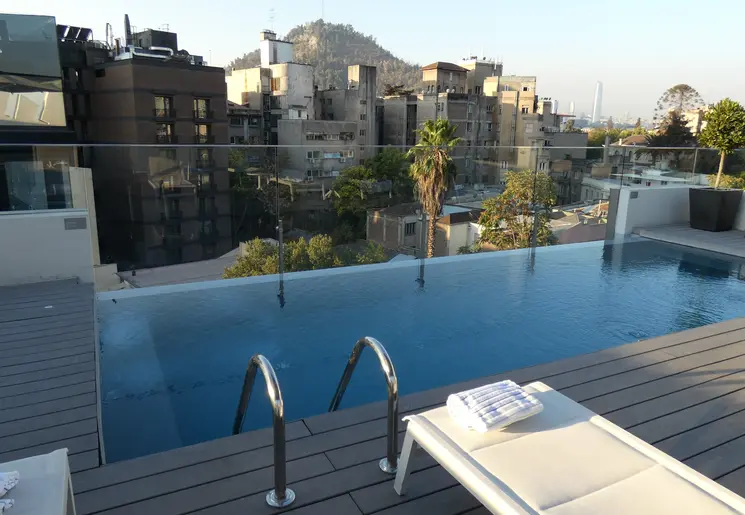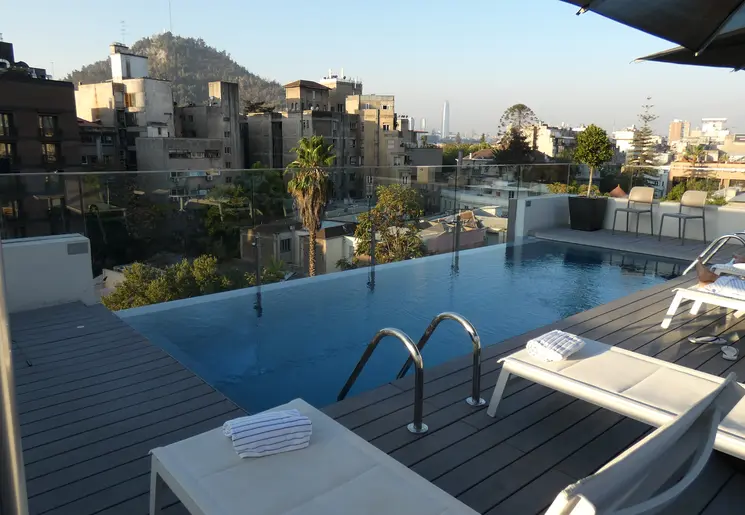 Bohémien hotel in de hippe wijk Lastarria met klein zwembad op het dak.