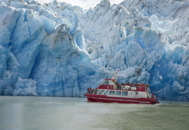De excursie per boot die over Lago Grey naar de gletsjer vaart, vertrekt vanaf hotel Lago Grey. Over een kiezelstrand loop je in een half uur tot drie kwartier naar de boot. Aan boord! Je staat onderweg versteld van het natuurschoon. De gletsjer hoort bij de zuidelijke ijsvelden van Patagonië. IJsschotsen drijven langs in het water. Hoogtepunt is het moment waarop het blauwe ijs van de gletsjer aan de horizon verschijnt. Trek een zwemvest aan en ga naar buiten om de mooiste foto’s te nemen. De boottrip duurt iets minder dan 3 uur. Aan boord zijn drankjes verkrijgbaar.