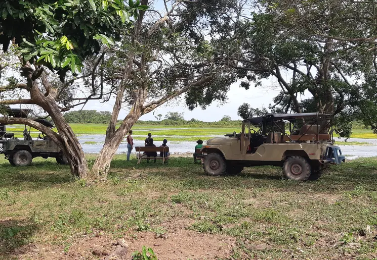 Als je hier tussen juni en augustus bent, bezoek je met een tractor het gebied waar duizenden reigers en roze lepelaars nestelen.
