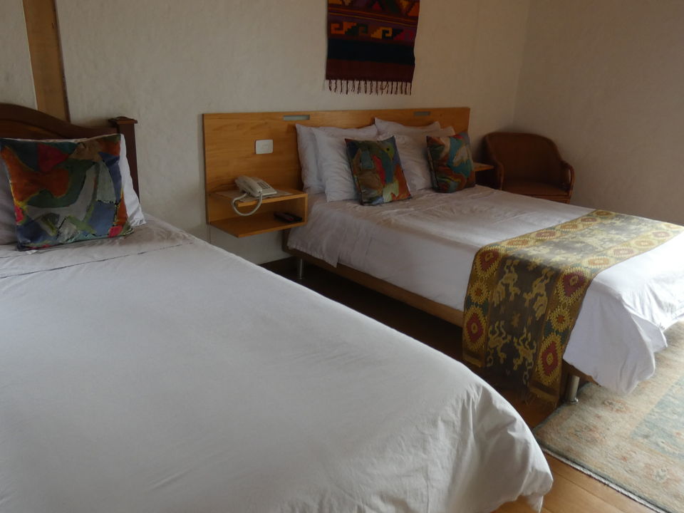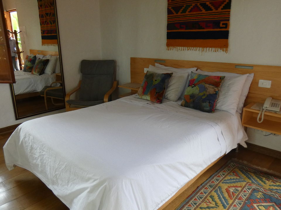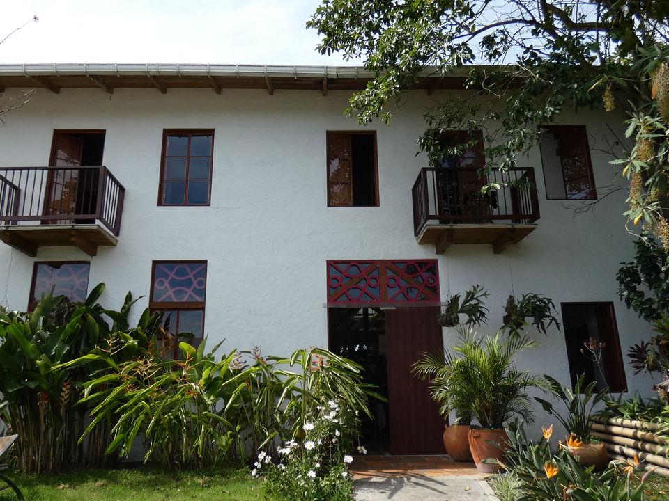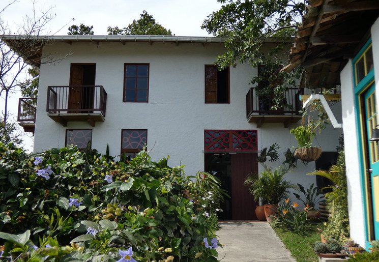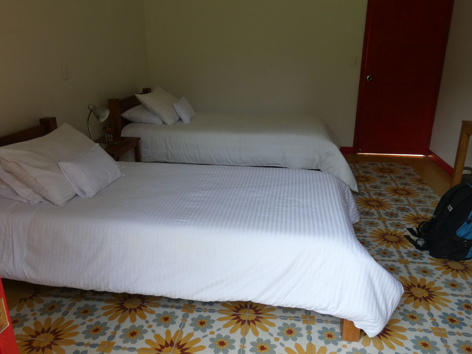 Verdeeld over het enorme terrein dat eigendom van de Haciënda is, staan verschillende gebouwen. In drie gebouwen zijn kamers gevestigd. Er is onder anderen een hostal, hier worden geen kamers geboekt. Vlakbij de receptie is de koffielodge. Hier zijn elf kamers. Niet super-de-luxe, maar gewoon prima. Klein, maar functioneel. En let eens op de prachtige plavuizen op de vloer. Een groot voordeel is dat iedere kamer een klein balkonnetje met twee stoelen heeft. Elke kamer heeft een eigen badkamer met een douche met warm en koud water. Er is een kluisje en er staat een ventilator. Er zijn kamers met een tweepersoonsbed en kamers met twee aparte bedden. De helft van de kamers kijkt uit op de tuin en de andere helft op de plantage.