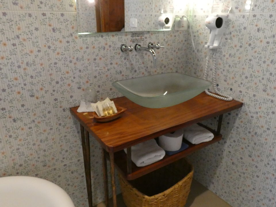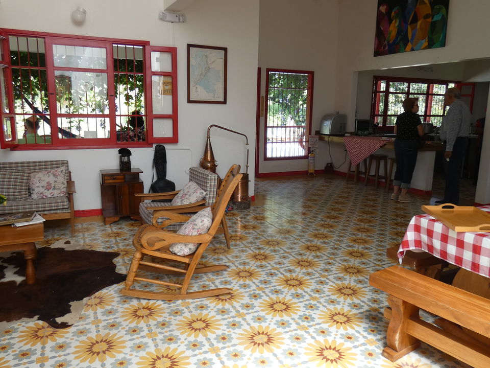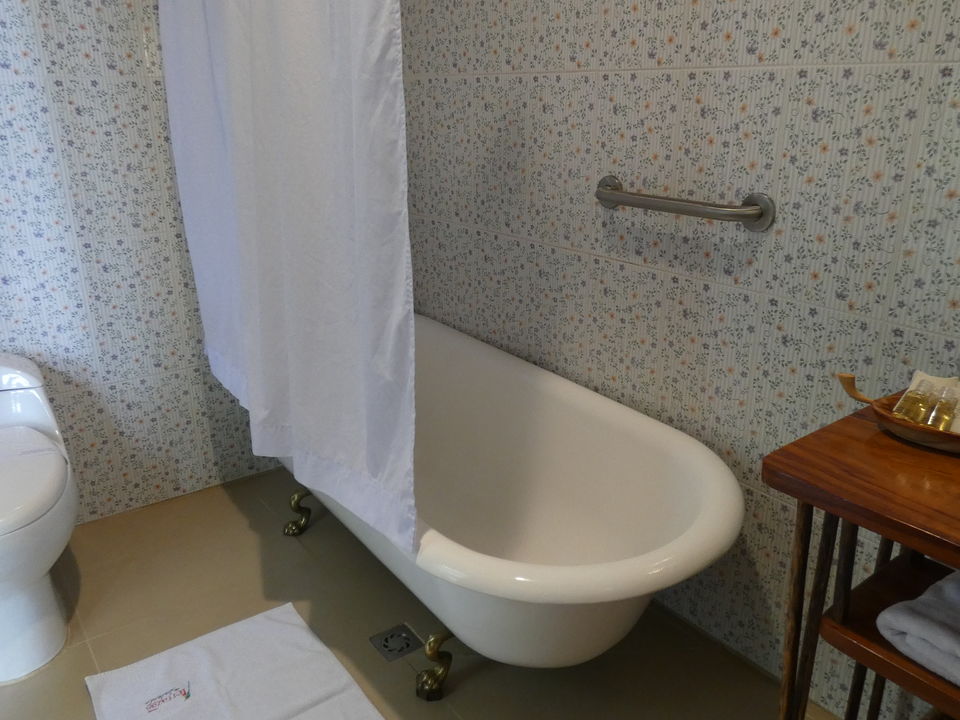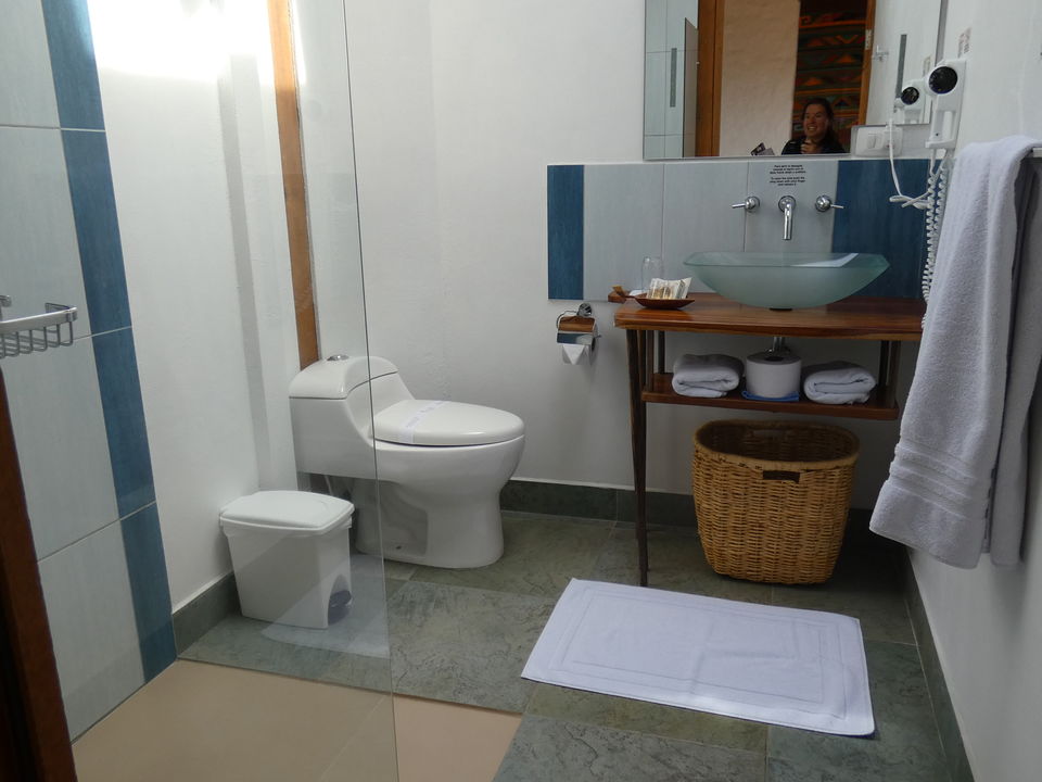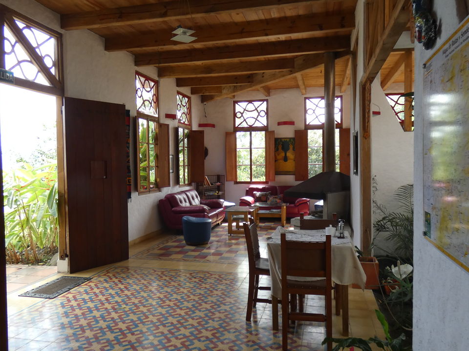 Verdeeld over het enorme terrein dat eigendom van de Haciënda is, staan verschillende gebouwen. In drie gebouwen zijn kamers gevestigd. Er is onder anderen een hostal, hier worden geen kamers geboekt. Vlakbij de receptie is de koffielodge. Hier zijn elf kamers. Niet super-de-luxe, maar gewoon prima. Klein, maar functioneel. En let eens op de prachtige plavuizen op de vloer. Een groot voordeel is dat iedere kamer een klein balkonnetje met twee stoelen heeft. Elke kamer heeft een eigen badkamer met een douche met warm en koud water. Er is een kluisje en er staat een ventilator. Er zijn kamers met een tweepersoonsbed en kamers met twee aparte bedden. De helft van de kamers kijkt uit op de tuin en de andere helft op de plantage.