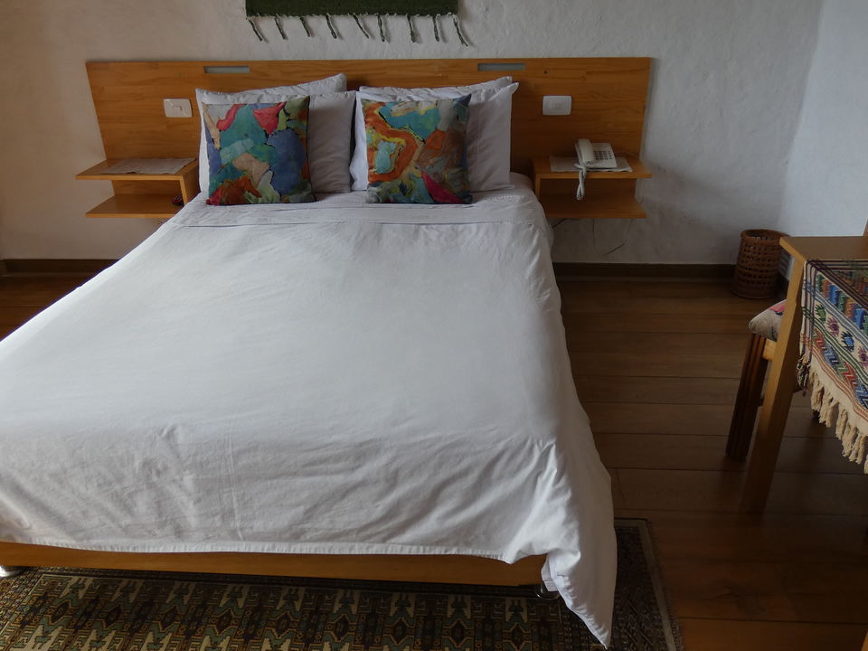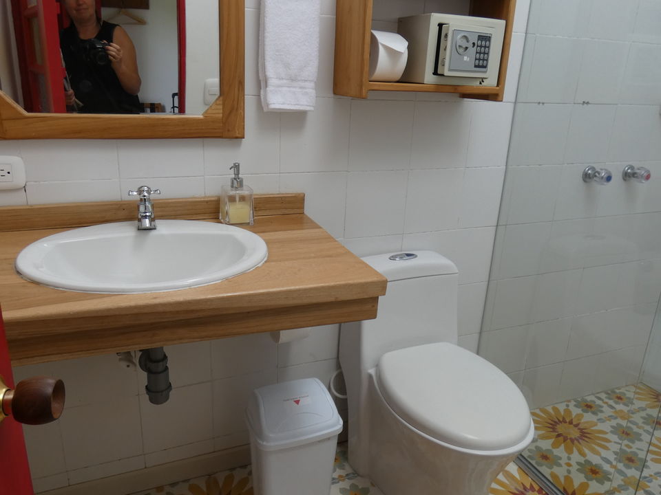 Persoonlijkheid op en top in Las Terrazas! Er zijn slechts zeven kamers. De kamers lijken allemaal op elkaar, maar hebben kleine verschillen. Zo zijn er drie met een tweepersoonsbed, enkelen met een Frans balkon. De kamers liggen bijna allemaal op de eerste etage rond een binnentuin. Maar dan ook écht een binnentuin. Bananenplanten en andere exotische planten uit de streek groeien hier. Eromheen zijn diverse zitjes gecreëerd. Ook in de tuin zijn diverse zitjes te vinden. De kamers bevinden zich in een wit huis. Alle kamers beschikken over een televisie en een föhn. Iets wat je niet zo vaak aantreft in Colombiaanse hotels: er is een waterkoker, zodat je koffie en thee kunt zetten op je kamer. In de hal is een water refill. Op de vloeren van zowel de kamers als de algemene ruimtes liggen plavuizen. En overal die grote ramen, waar het licht door naar binnen stroomt. Aan de muur hangen kleurrijke reproducties en op het bed ligt een kleurige sprei. Er zijn zowel kamers met een tweepersoonsbed als met twee aparte bedden. Op sommige kamers kan een extra bed bij worden geplaatst.