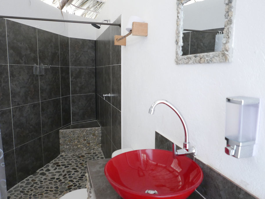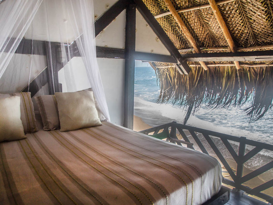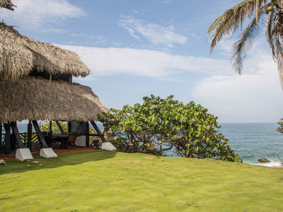 Aan het strand. En niet zomaar een strand, maar één van de mooiste van Colombia. Voor de deur neem je zo een duik in het water. Een terras en een tuin maken het geheel compleet.