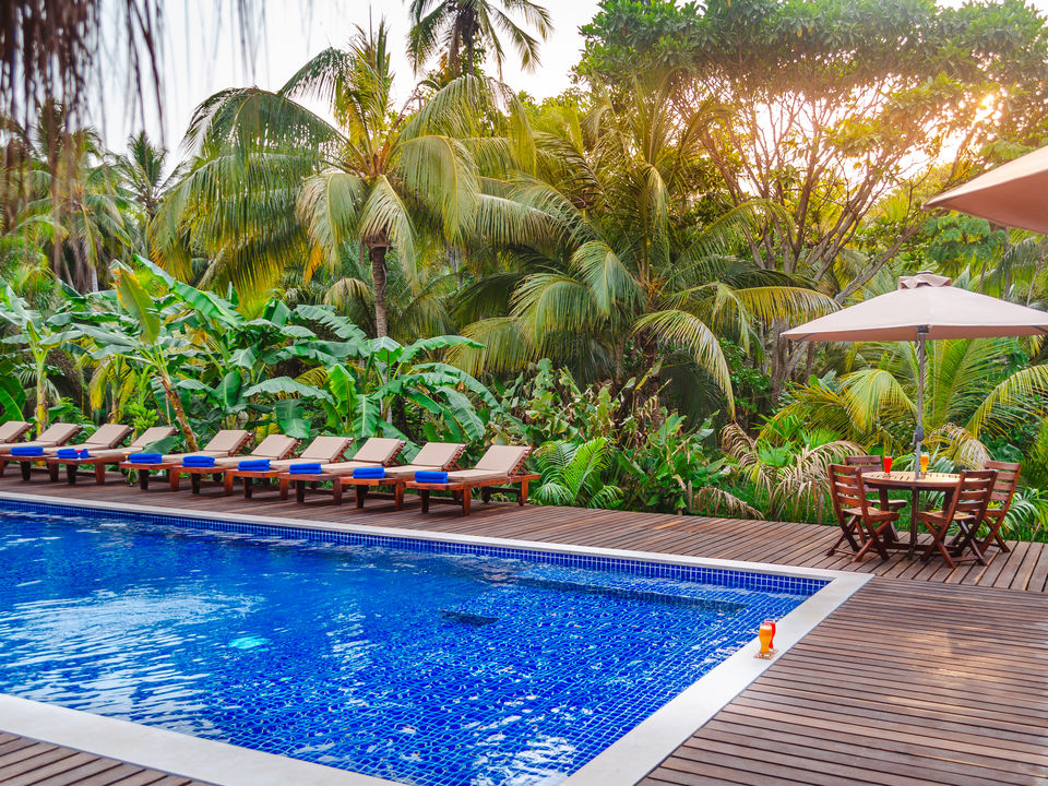Kokospalmen, wit zandstrand en turquoise water; je bent in de tropen! Cocoplum Beach is een gezellig hotel aan het mooiste strand van San Andrés. Het hotel heeft een zwembad.