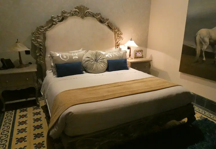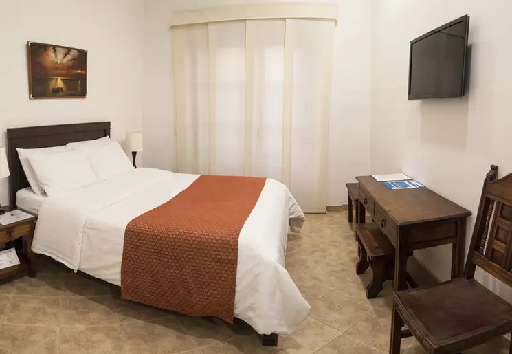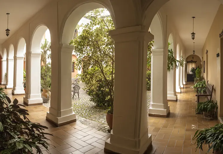Wat een fotogenieke architectuur. Ben je in een museum of een oud klooster beland? Een wit gebouw met bogen en een binnenplaats, twee torentjes die daarachter oprijzen: een waar monument waarin de kamers van hotel La Plazuela zijn gevestigd. Geniet van een hapje en een drankje op de binnenplaats met oude keitjes en een fontein.