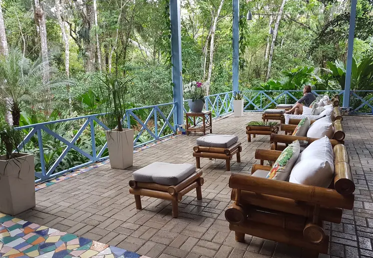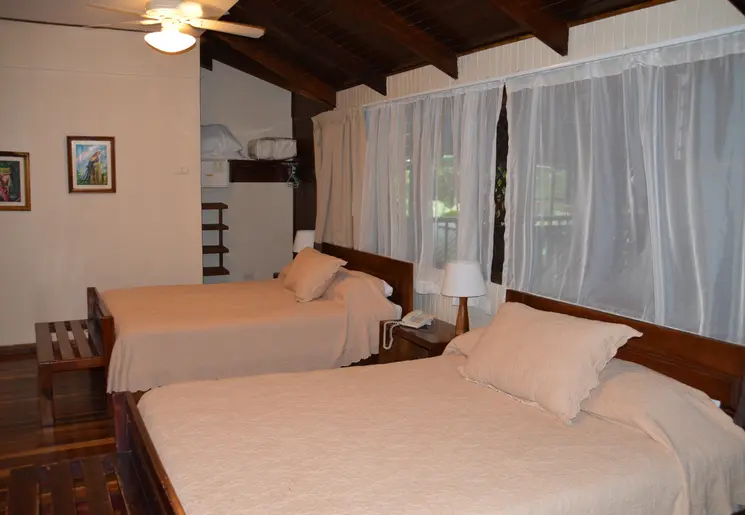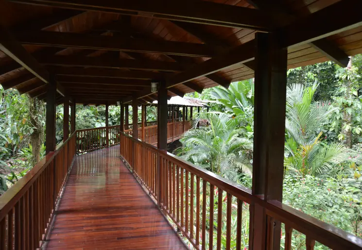 Bij de accommodatie kun je in de middag een wandeling maken met een gids door de jungletuinen met kleurrijke bloemen. Grote leguanen liggen te zonnen op het gras, en hoog in een boom hangt een luiaard. En dat allemaal in ‘jouw’ achtertuin. Er is ook een ‘greenhouse’ op het terrein waar je kleine en kleurrijke (gif)kikkertjes kunt spotten.