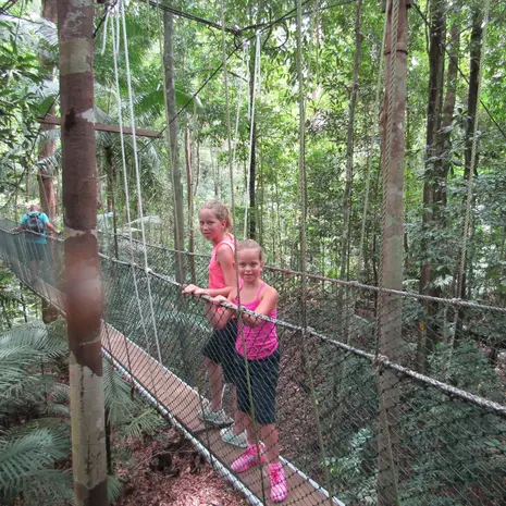 Lekker geslapen in de jungle van Taman Negara? Ook vandaag gaan jullie op avontuur. Neem de longtailboot en vaar met flinke snelheid richting de watervallen van Lata Berkoh. Vergeet niet je zwemspullen mee te nemen! Of breng een bezoekje aan de oorspronkelijk bewoners van Maleisië, de Orang Asli, hier zie je hoe ze nog volgens traditie leven, maar ook mag je zelf eens kijken of het lukt om een blaaspijp met pijl af te schieten. Hebben jullie geen last van hoogtevrees? Dan is een canopywalk erg leuk. Maar liefst 7 loopbruggen, met een totale lengte van zo’n 250 meter, zijn op ruim 40 meter hoogte tussen de boomtoppen gespannen. Een letterlijk hoogtepunt dus. Neem er de tijd voor en kijk goed om je heen. Wie spot als eerste een neushoornvogel of een aapje? Liever met beide voeten op de grond? Ga dan mee op speurtocht door de jungle, op zoek naar duizendpoten, salamanders, vogels en vele andere dieren. In Taman Negara loop je voornamelijk op verharde paden, het is dus voor het hele gezin goed te doen.