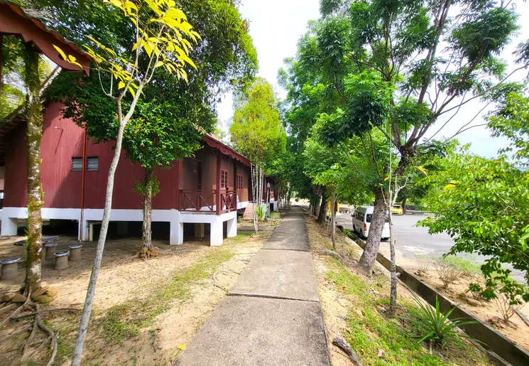 Eenvoudige huisjes gebouwd op betonnen palen in een tuin met veel bloemen. Het Tekoma Resort is goed geschikt voor koppels die samen reizen maar ook zeker voor gezinnen. Het hotel heeft als enige hotel in Taman Negara een zwembad. Daarnaast heeft het hotel veel kamers welke voor gezinnen zeer geschikt zijn.