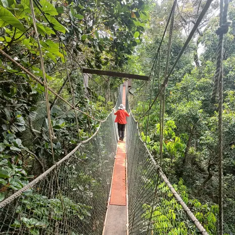 Lekker geslapen in de jungle van Taman Negara? Ook vandaag gaan jullie op avontuur. Neem de longtailboot en vaar met flinke snelheid richting de watervallen van Lata Berkoh. Vergeet niet je zwemspullen mee te nemen! Of breng een bezoekje aan de oorspronkelijk bewoners van Maleisië, de Orang Asli, hier zie je hoe ze nog volgens traditie leven, maar ook mag je zelf eens kijken of het lukt om een blaaspijp met pijl af te schieten. Hebben jullie geen last van hoogtevrees? Dan is een canopywalk erg leuk. Maar liefst 7 loopbruggen, met een totale lengte van zo’n 250 meter, zijn op ruim 40 meter hoogte tussen de boomtoppen gespannen. Een letterlijk hoogtepunt dus. Neem er de tijd voor en kijk goed om je heen. Wie spot als eerste een neushoornvogel of een aapje? Liever met beide voeten op de grond? Ga dan mee op speurtocht door de jungle, op zoek naar duizendpoten, salamanders, vogels en vele andere dieren. In Taman Negara loop je voornamelijk op verharde paden, het is dus voor het hele gezin goed te doen.