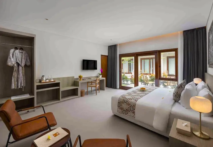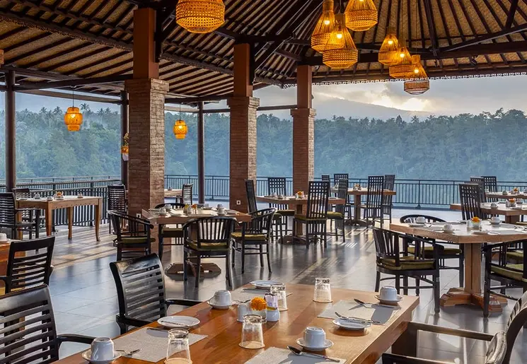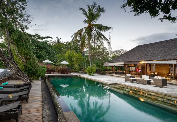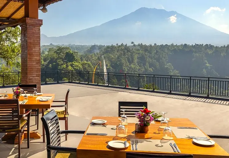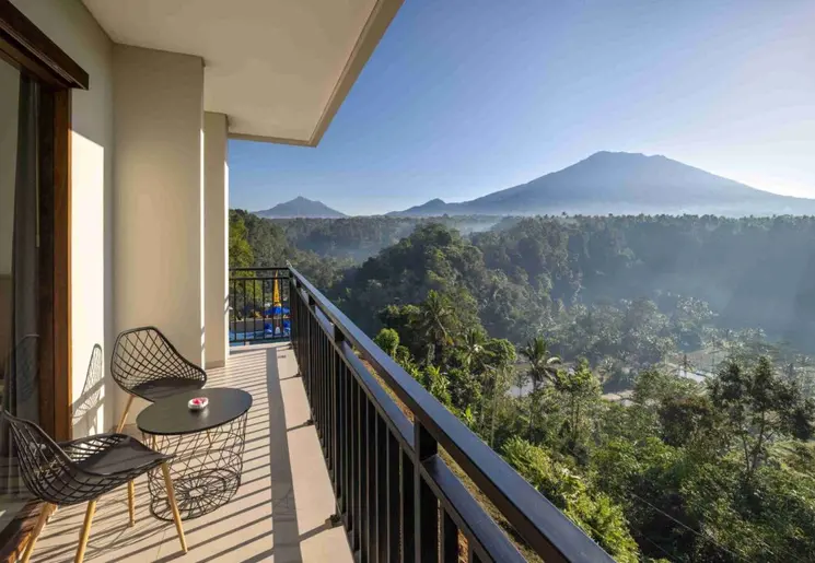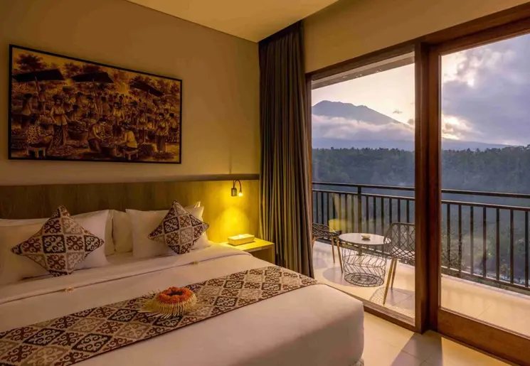 Wat een locatie! Vanuit het hotel kijk je uit op de Gunung (berg) Agung, met de bijzonder mooie Besakih-tempel op de helling er van. Het zwembad is zo aangelegd dat je volop geniet van het adembenemende uitzicht. Al ligt Rendang vlakbij de belangrijke bezienswaardigheid: het is er niet toeristisch.