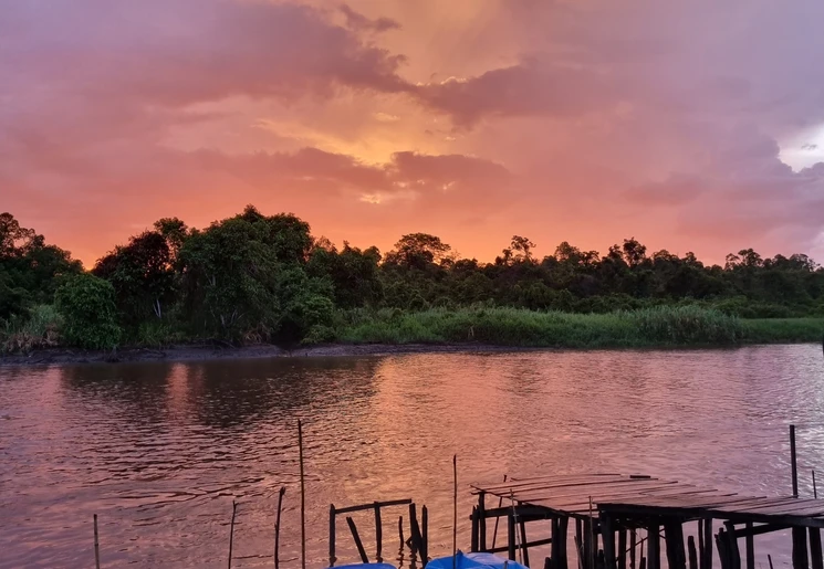 Je gaat de lange weg terug per speedboot over de rivier naar Kepi.
