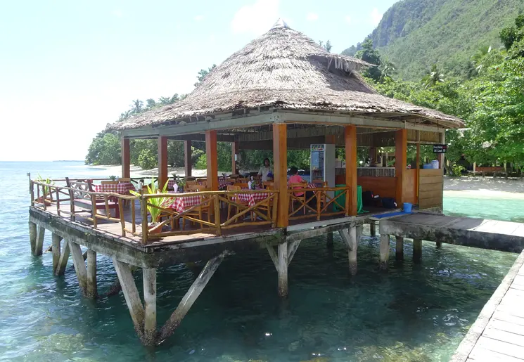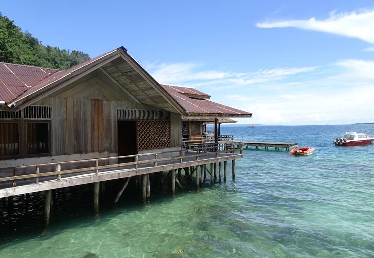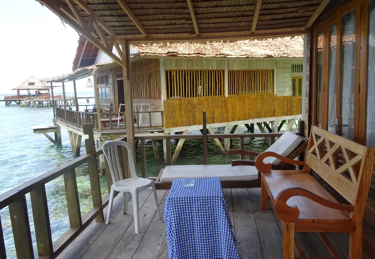 Je komt aanvaren en je hart maakt een sprongetje: huisjes op palen, het ultieme bountygevoel. Alles ziet er zo lieflijk uit, hier wil je graag een paar dagen verblijven en genieten van de mooie onderwaterwereld rondom de eilandjes. Verwacht niet dat alles gladjes verloopt… maar voor dit nog niet-toeristische gebied is dit wel bijzonder.