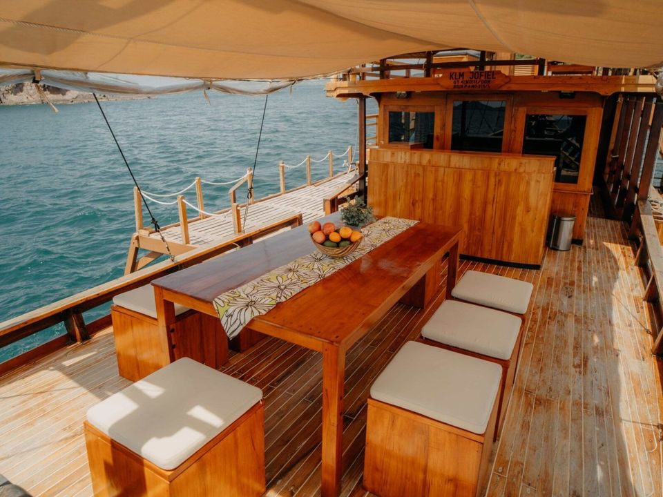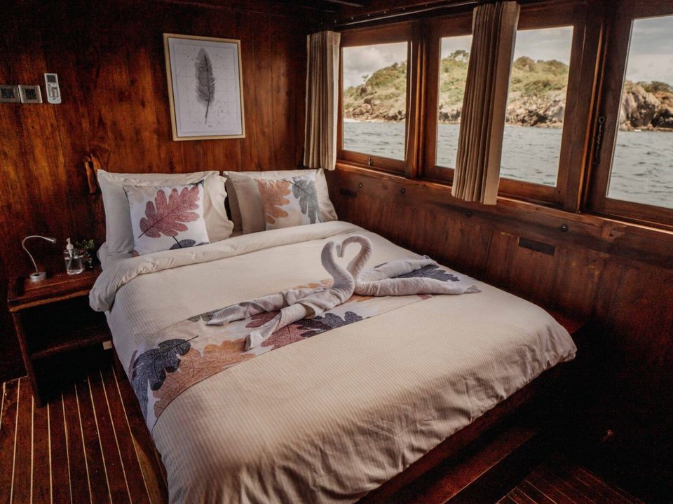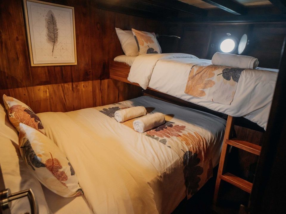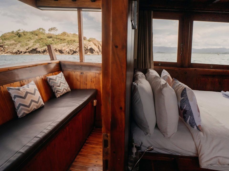 Tijdens je trip naar de eilanden Komodo en Rinca overnacht je aan boord van een deluxe Komodoboot. Deze boot is alleen voor je gezelschap, privé dus. Bij de deluxe boot heb je aparte slaaphutten met airconditioning. Er is een binnenlounge met televisie en eethoek op het dek. Er is tevens een zonnedek met zitzakken. Snorkel materialen zijn aan boord aanwezig.