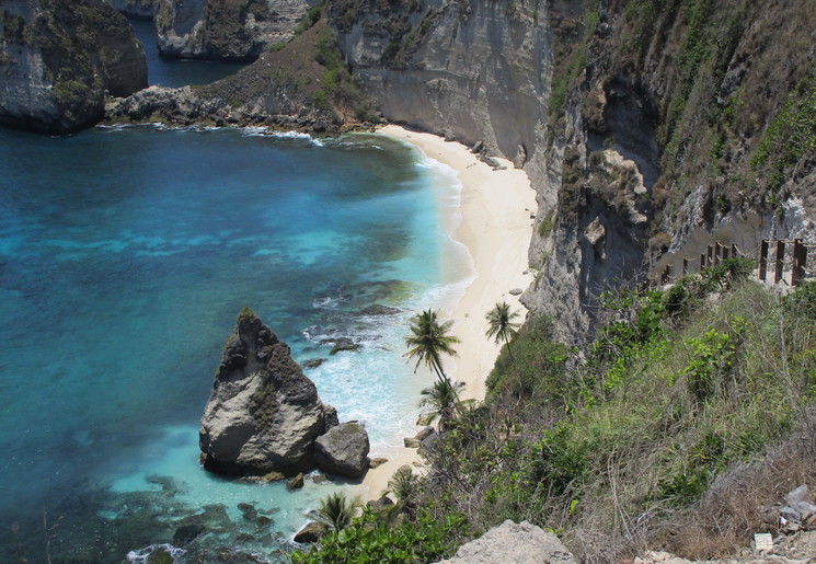 Wat een plaatje! Diamond Beach op Nusa Penida is één van onze favoriete stranden van Indonesië. Het witte zandstrand wordt omgeven door kalkstenen rotsen en palmbonen aan de ene kant en een helderblauwe zee aan de andere kant. Vanaf de klif heeft u een prachtig uitzicht over Diamond Beach en Atuh Beach. Tegenwoordig is het strand van Diamond beach ook te bereiken via een uit de rotsen gesneden trap.