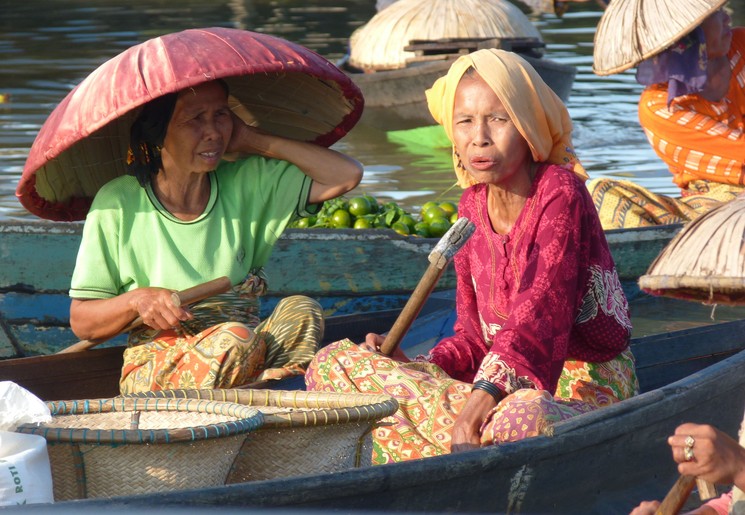 Het is heel leuk om ’s ochtends per gemotoriseerde kano naar de drijvende markt te gaan. Dit is een kleurrijk en fotogeniek spektakel. In tientallen kleine kano’s varen vrouwen met hun handelswaar: groente, fruit, gebruiksvoorwerpen, maar ook drijvende restaurantjes. Vanaf de stad is het ongeveer 1,5 uur varen naar de drijvende markt. Ga er vroeg heen want rond 09.00 uur neemt de drukte af.