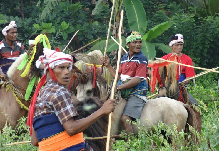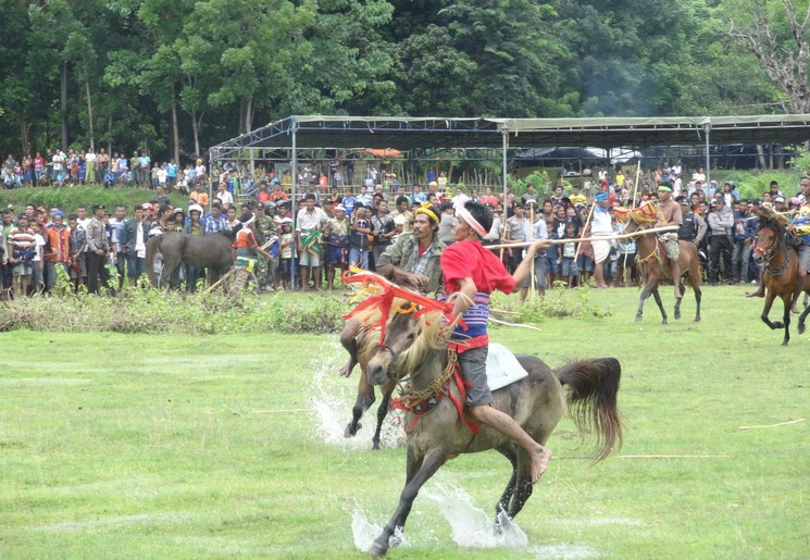 Twee groepen Sumbanese mannen doen oude inheemse oorlogen na. Ze dragen traditionele kledij en rijden op paarden die met allerlei kleuren zijn gedecoreerd. Alle mannen dragen een speer van anderhalve meter lang, waarmee ze met elkaar vechten. Let op: het is geen spel, maar een serieuze aangelegenheid! Er moet bloed vloeien en er vallen vaak doden.