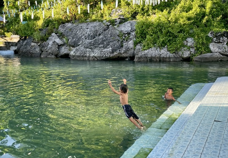 Enkele huizen zijn op palen gebouwd. Zo ook de eenvoudige, maar erg leuke guesthouse waar wij overnachten. Vanaf de terrasjes genieten we van de rust. We zien vissers voorbij varen en de zon zakken in de zee. Dat zorgt voor een mooi kleurenspel. Ook maken we een korte wandeling door het dorpje, gelegen achter onze guesthouse. De lokale bevolking leeft hun dagelijkse leven en zwaaien met een glimlach als ze mensen van buiten het dorp zien, zoveel toeristen komen hier namelijk nog niet. We bezoeken de wasplaats van Sawai, die speciaal voor de lokale bevolking is gemaakt. Naast dat het een mooie wasplaats is, wordt het door de kinderen ook graag gebruikt als zwembad. Spot jij de Nederlandse vlag in het dorp?