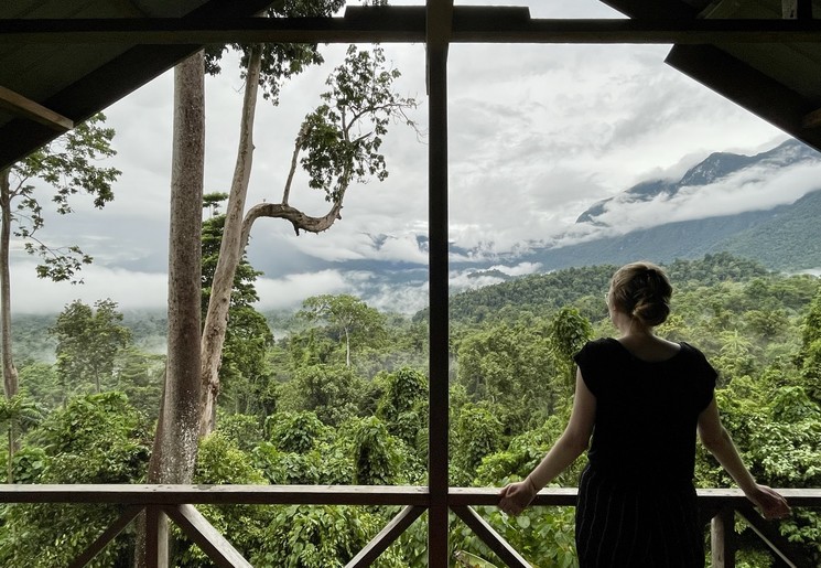 Toen wij na een klim aankwamen bij een eenvoudig huisje met uitkijkpunt waren wij even stil. Wauw, wat een uitzicht! Alsof je je midden in een National Geograpic film bevindt. Je hebt een adembenemend uitzicht over de jungle heen, met laaghangende wolken en diverse tropische vogels die voorbij vliegen. Met de verrekijker die gids Sony bij zich heeft, hebben wij zelfs van dichtbij neushoornvogels gespot. En een welverdiend kopje thee smaakt met zo’n uitzicht toch net wat lekkerder!