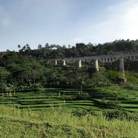 Uitgestrekte rijstvelden onderweg naar Bandung
